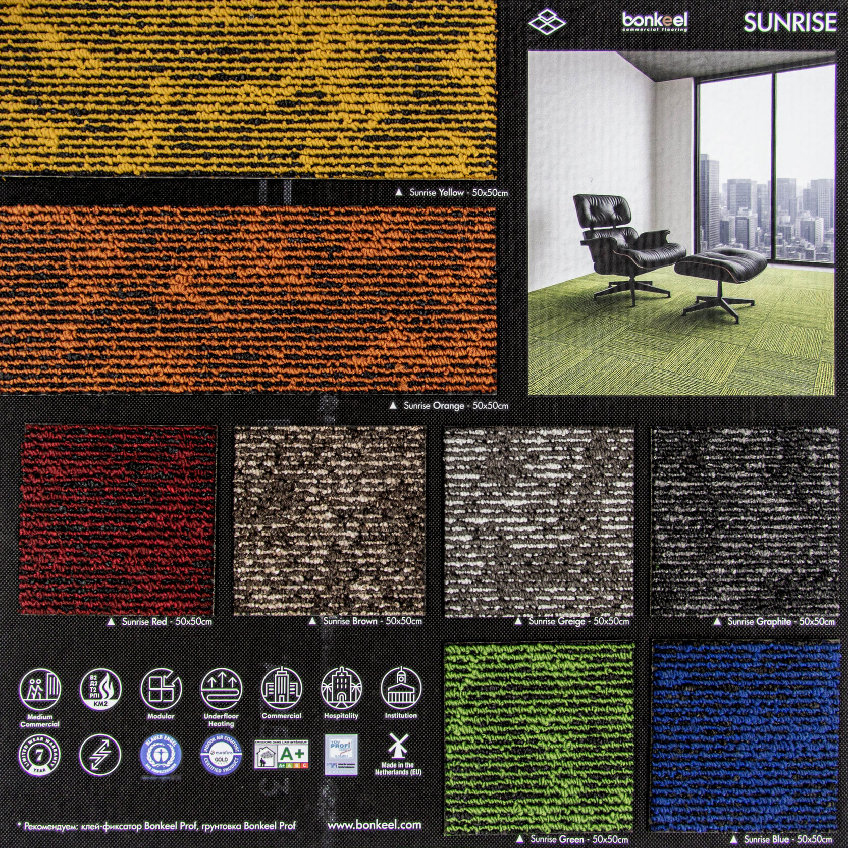 Ковровая плитка Sunrise представлена на планшетке с образцами:
